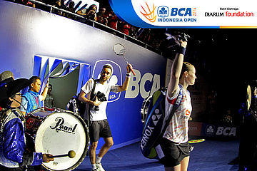 Salah satu pemain perkusi yang turut memeriahkan gelaran BCA Indonesia Open Super Series Premier 2014