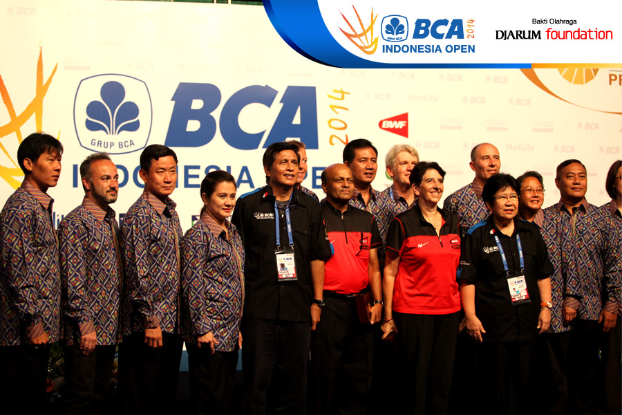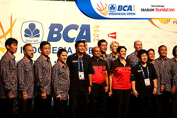 Para umpire dan pengurus PBSI berfoto bersama sebelum pertandingan dimulai