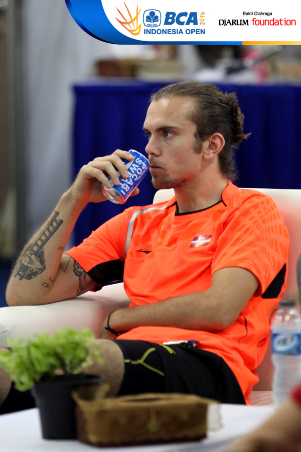 Jan O Jorgensen (Denmark) bersantai di player lounge sebelum bertanding