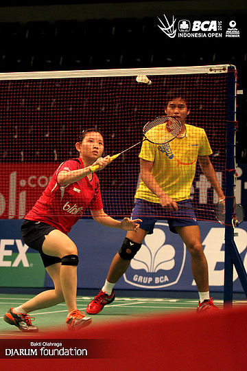 Edi Subaktiar/Liliyana Natsir (Indonesia) saat berlatih.