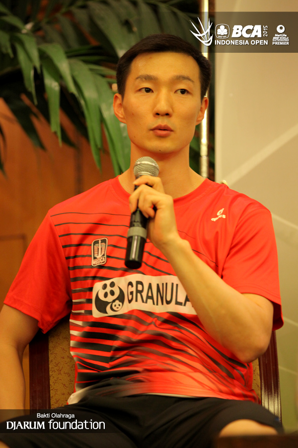 Mathias Boe, salah satu pebulutangkis andalan Denmark menjawab pertanyaan media saat acara press conference.