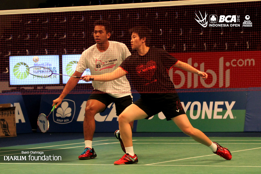 Tontowi Ahmad/Debby Susanto (Indonesia) saat berlatih.