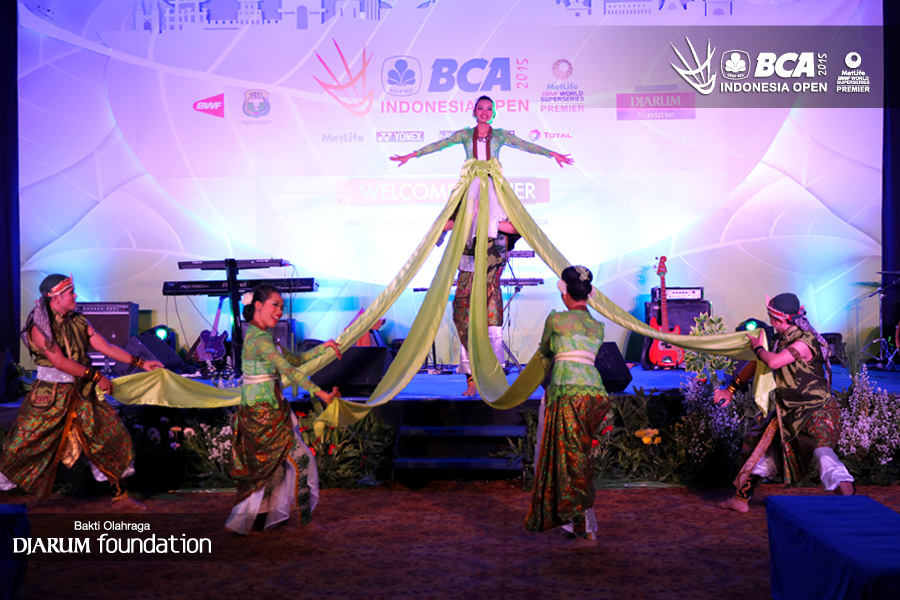 Penampilan beberapa penari memeriahkan acara welcome dinner BCA Indonesia Open Super Series Premier 2015.