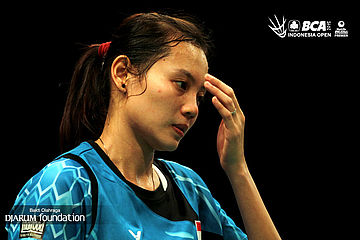 Ekspresi Annisa Saufika (Indonesia) saat kehilangan poin.
