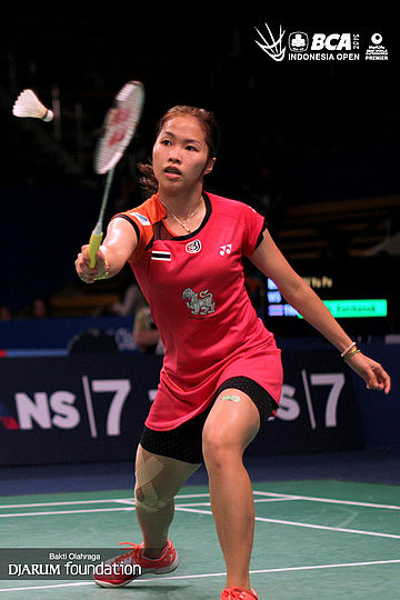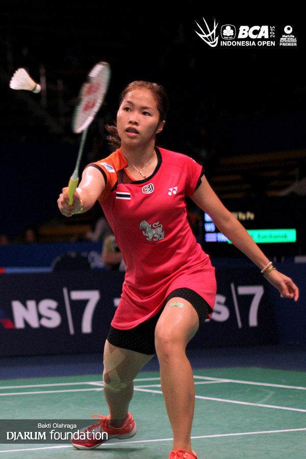 Ratchanok Intanon (Thailand) menghadang pengembalian dari Pai Yu Po (China Taipei).