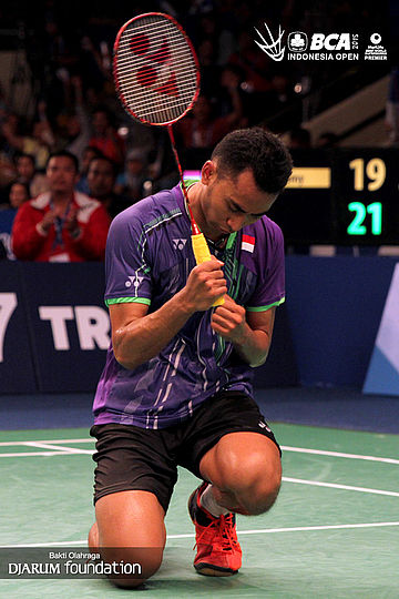 Selebrasi Tommy Sugiarto (Indonesia) saat berhasil mencuri poin.