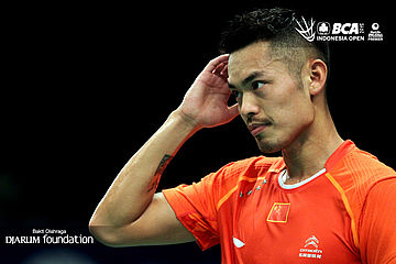 Ekspresi Lin Dan (China) saat kehilangan poin.