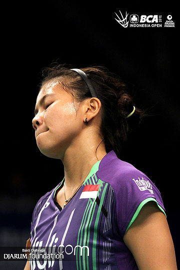 Ekspresi Greysia Polii (Indonesia) saat kehilangan poin.