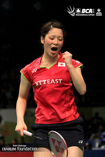 Ekspresi Minatsu Mitani (Jepang) saat berhasil mencuri poin.