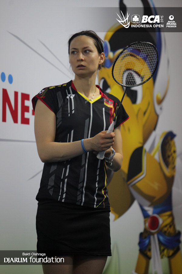 Johanna Goliszewski (German) melakukan pemanasan sebelum bertanding.