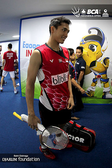 Jonatan Chistie (Indonesia) sebelum memasuki arena pertandingan.