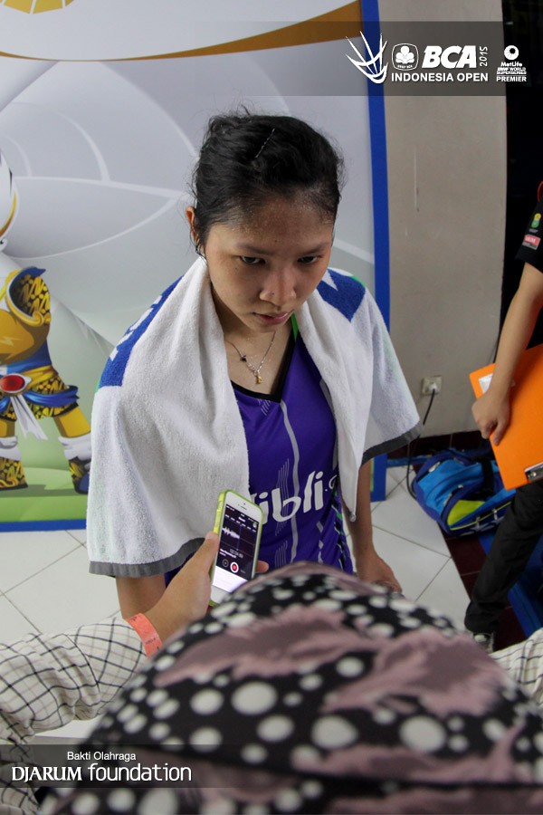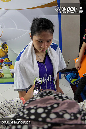 Lindaweni Fanetri (Indonesia) saat sedang di wawancara di mix zone.