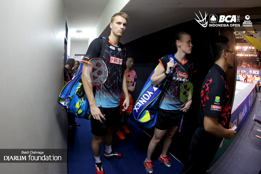 Mads Pieler Kolding/Kamilla Rytter Juhl (Denmark) Saat akan memasuki arena pertandingan.