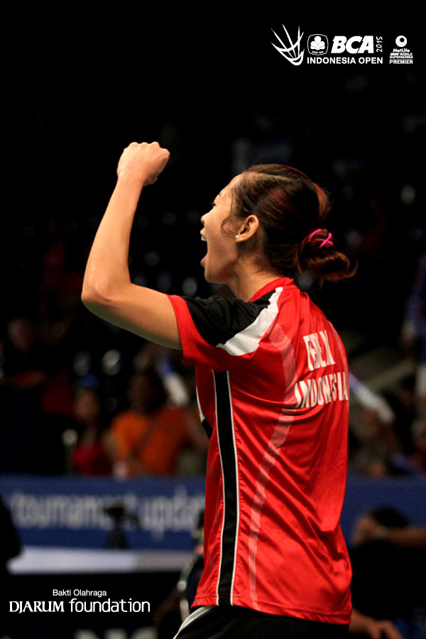 Selebrasi Maria Febe (Indonesia) saat berhasil memenangkan pertandingan.
