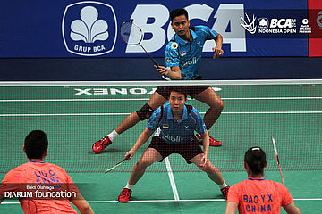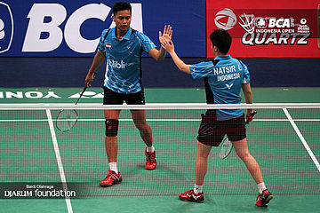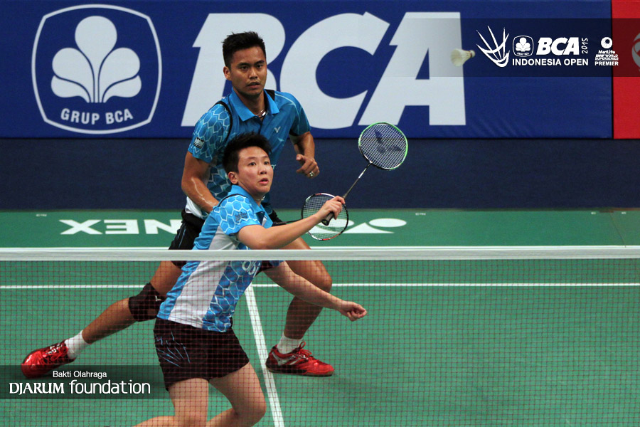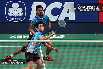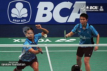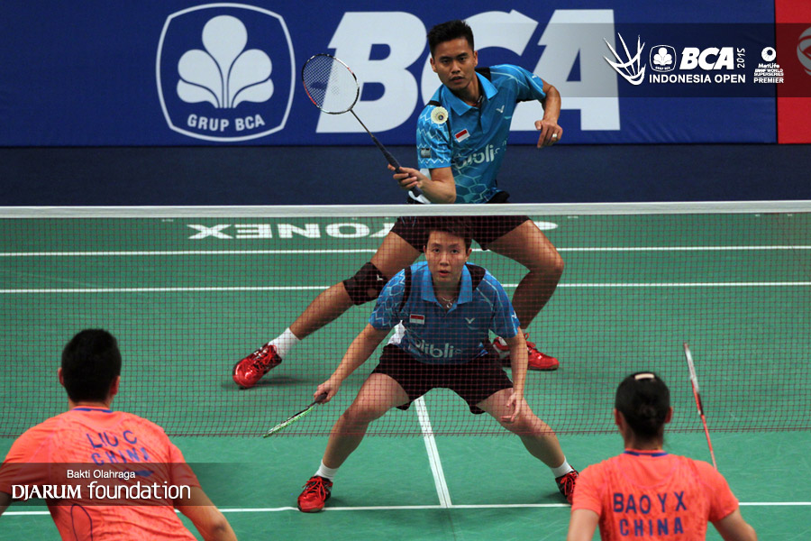 Kekompakan Tontowi Ahmad/Liliyana Natsir (Indonesia) di lapangan.