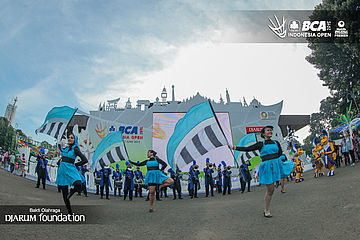 Aksi marchingband ikut memeriahkan gelaran BCA Indonesia Open Super Series Premier 2015.