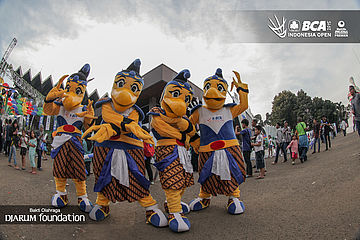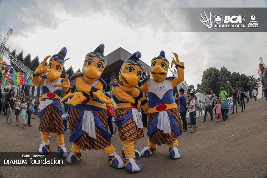 Aksi para dancer dan maskot BIO ikut memeriahkan gelaran BCA Indonesia Open Super Series Premier 2015.