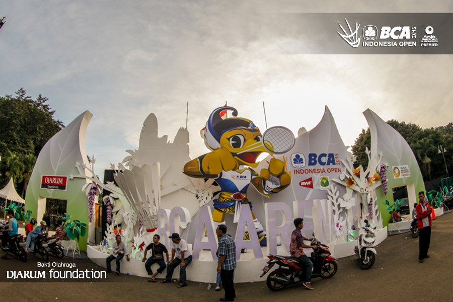 Suasana gerbang utama BCA Indonesia Open Super Series Premier 2015.