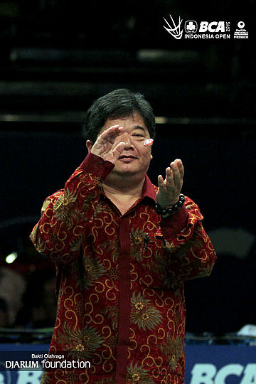 Aksi salah satu maskot turut memeriahkan gelaran BCA Indonesia Open Super Series Premier 2015.