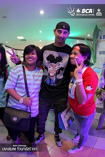 Ali Syakieb (tengah) berpose dengan pengunjung