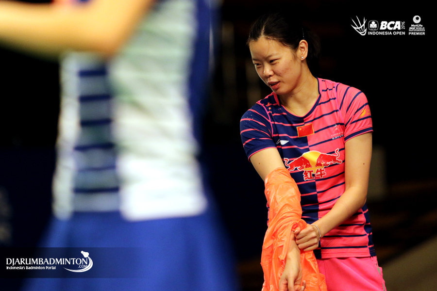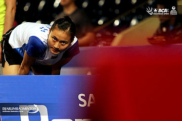 Wang Yihan (Tiongkok) saat melakukan peregangan sebelum berlatih