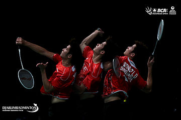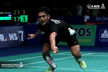 Zi Liang Derek Wong (Singapura) mengembalikan shuttlecock