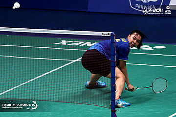 Gabriela Meilani Moningka (Indonesia) mengembalikan shuttlecock