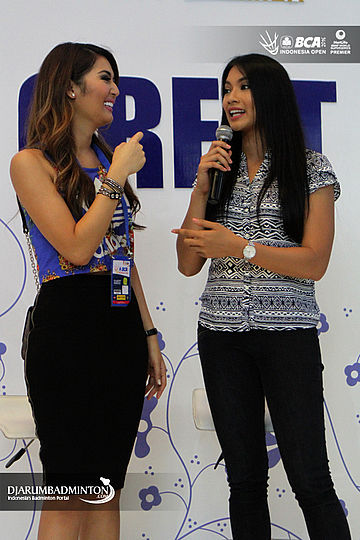 Maria Selena dan Anindya Kusuma Putri saat meet and greet di booth BCA