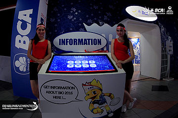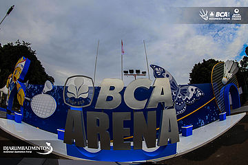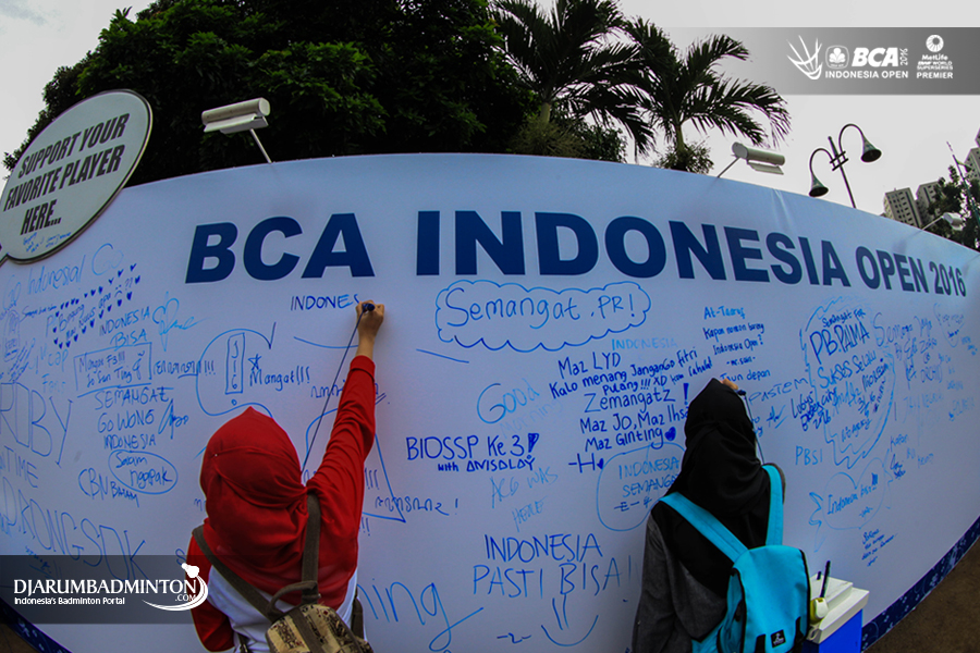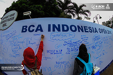 M Bayu Pangisthu dan Shesar Hiren Rhustavito (Indonesia) berphoto seusai meet and greet di booth Djarum Foundation