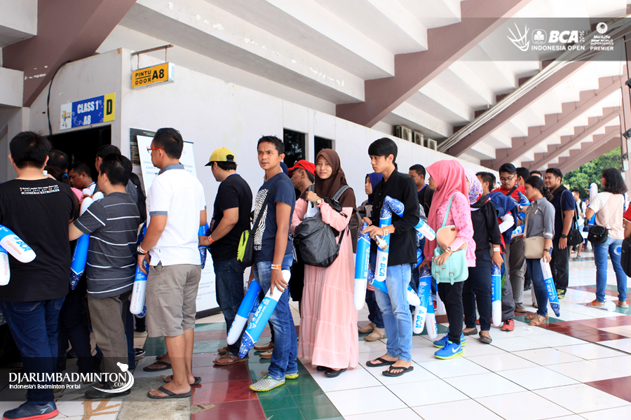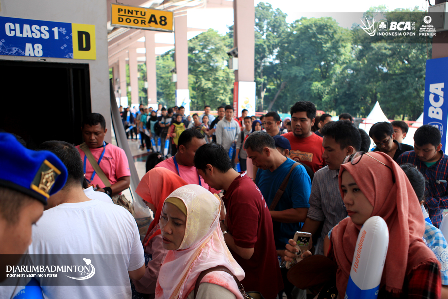 Antrian para supporter indonesia menuju arena pertandingan BCA Indonesia Open Super Series Premier 2016