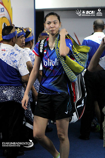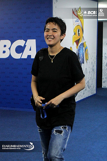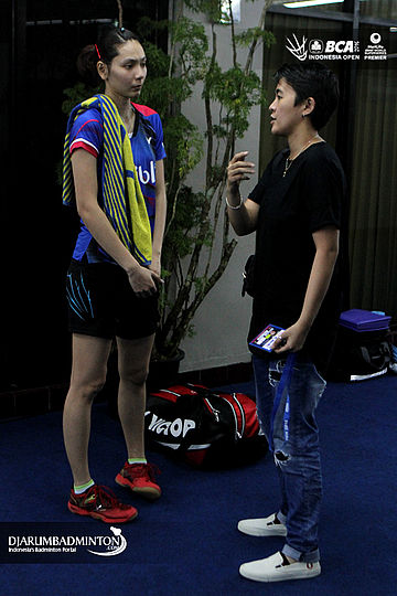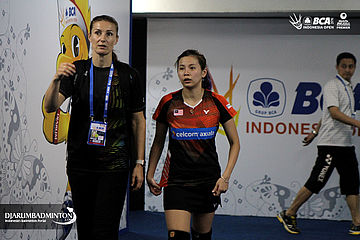 Goh Liu Ying (Malaysia) bersama terapis nya saat berada di player gate