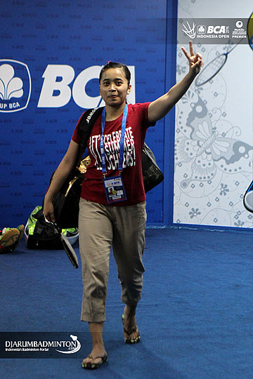 Melati Daeva O (Indonesia) bersiap memasuki arena pertandingan