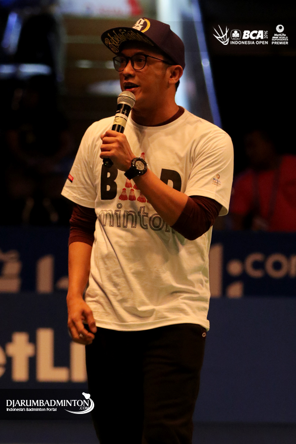 Steny Agustaf menjadi pembawa acara BCA Indonesia Open Super Series Premier 2016