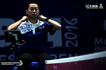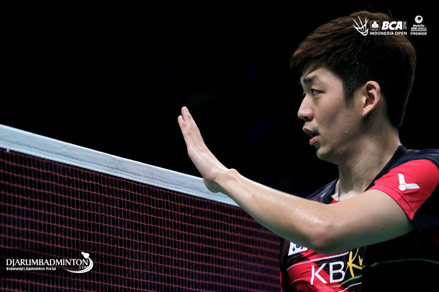 Lee Yong Dae (Korea) meminta maaf kepada lawannya