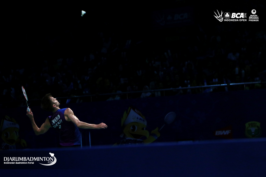 Marc Zwiebler (Jerman) bersiap melepaskan smash