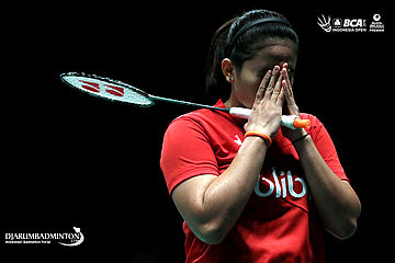 Ekspresi Richi Puspita Dili (Indonesia) saat berhasil mencetak poin