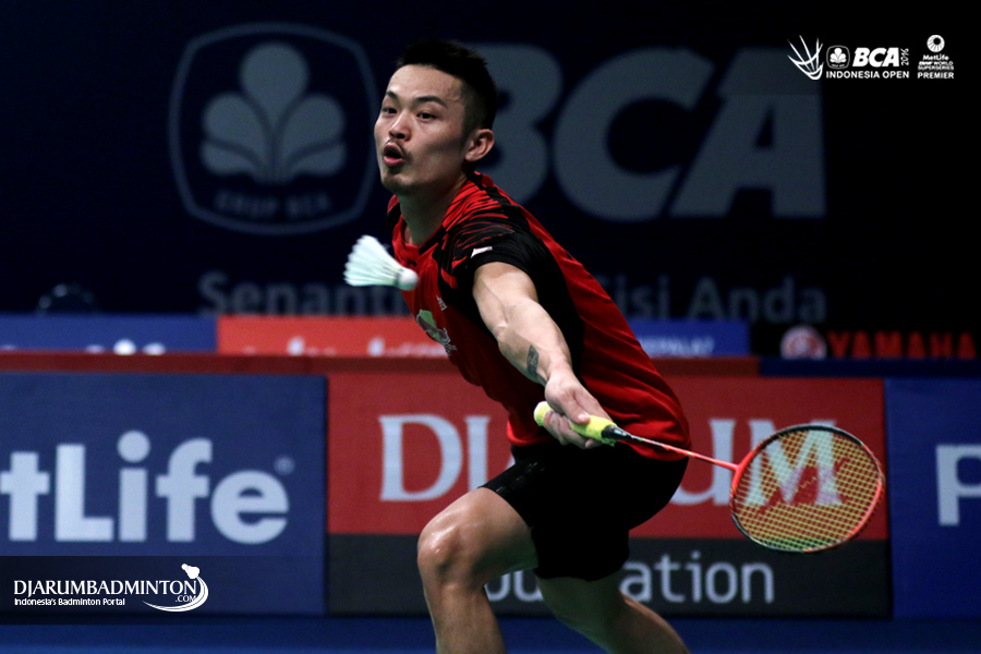 Lin Dan (Tiongkok) bersiap menghadang serangan
