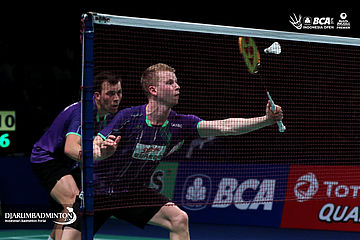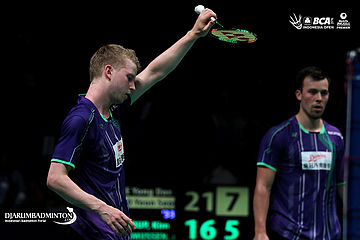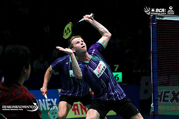 Anders Skaarupasmunssen/Kim Astrup (Denmark) menyambut pengembalian