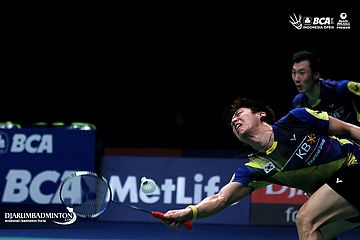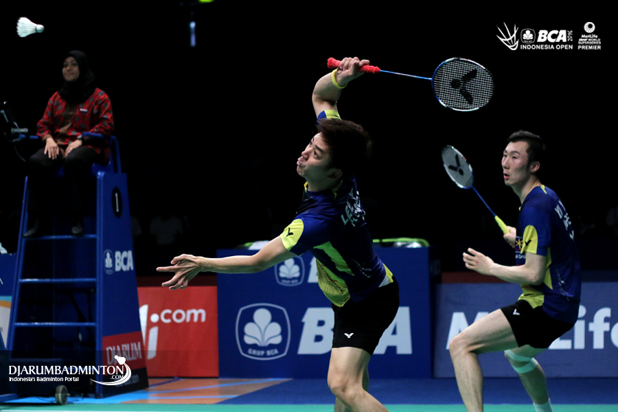 Lee Yong Dae/Yoo Yeong Seong (Korea) bersiap menyambut pengembalian