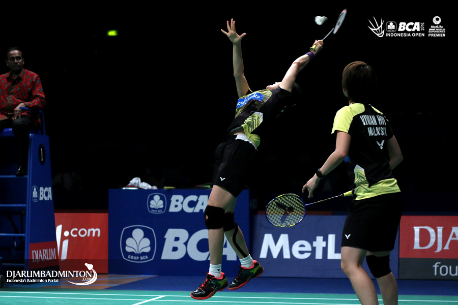 Khe Wei Woon/Vivian Kah Mun Hoo (Malaysia) menyambut pengembalian