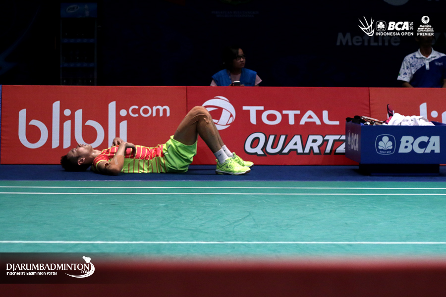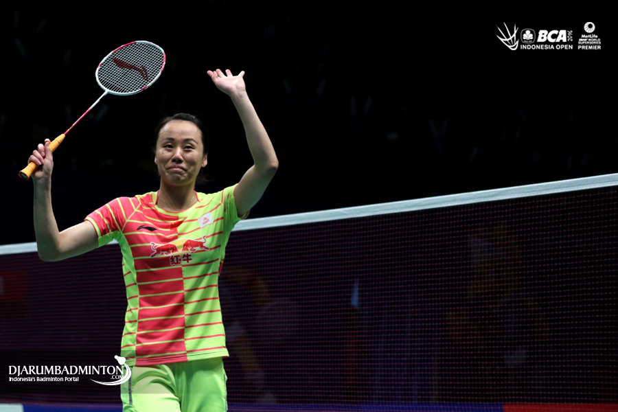 Zhao Yunlei (Tiogkok) memberikan apresiasi kepada seluruh supporter yang memadati Istora Senayan, Jakarta