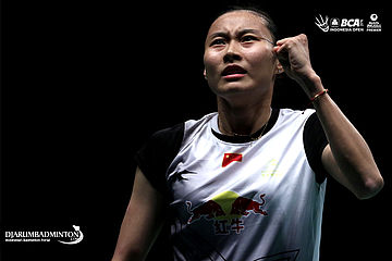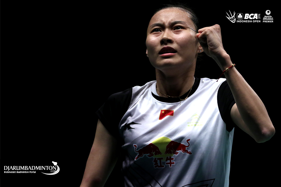Selebrasi Wang Yihan (Tiongkok)