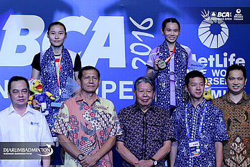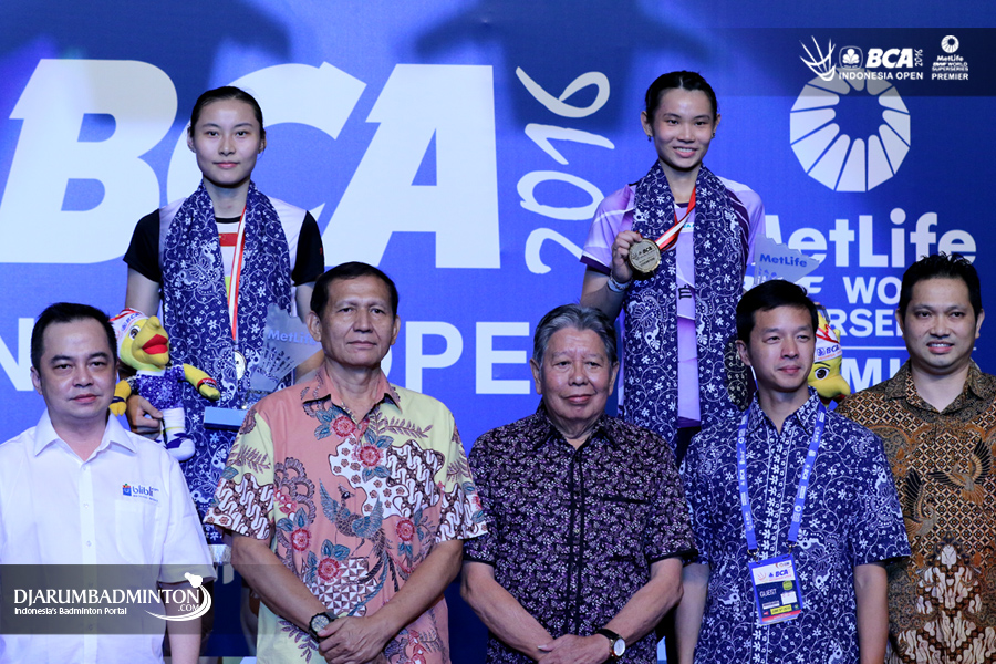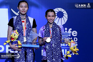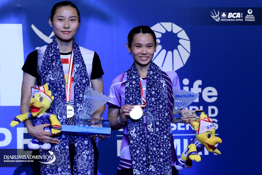 Wang Yihan (Tiongkok) dan Tai Tzu Ying (Taipei) di podium