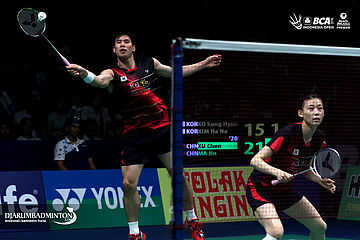 Ko Sung Hyun/Kim Ha Na (Korea) bersiap menyambut pengembalian