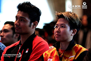 Berry Anggriawan dan Liliyana Natsir saat press conference BCA Indonesia Open Superseries Premier 2017