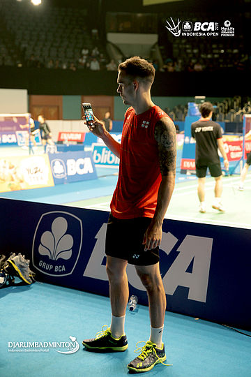 Chris Adcock (Inggris) melakukan selfie sebelum memulai latihan