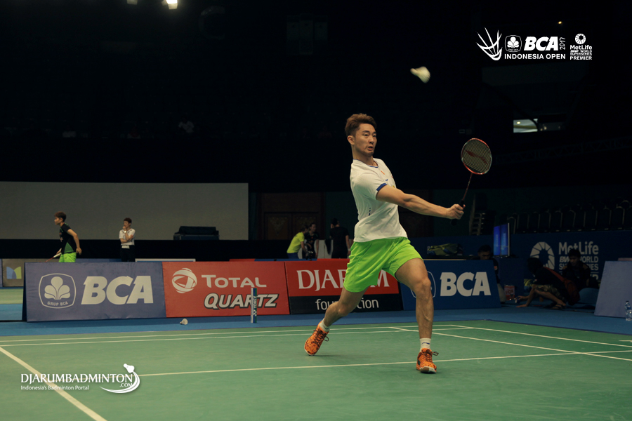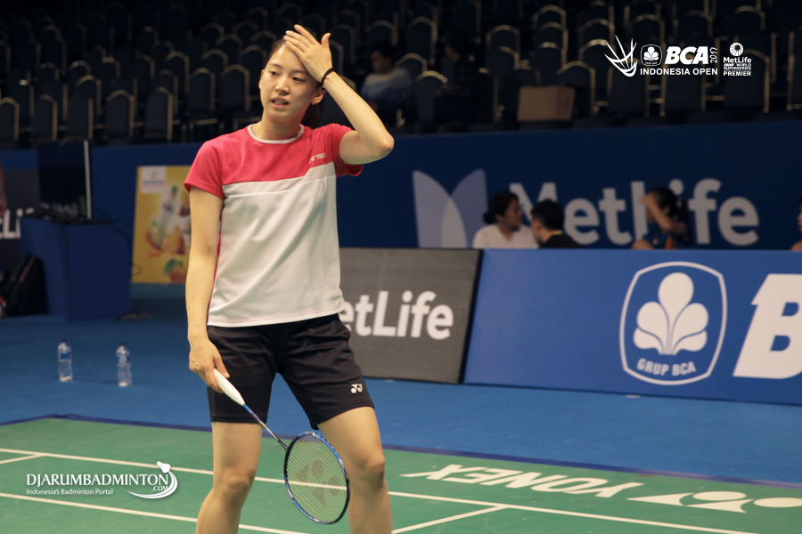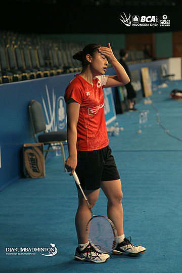 Ekspresi salah satu pebulutangkis tunggal jepang saat latihan