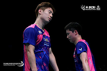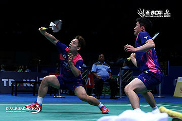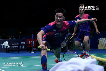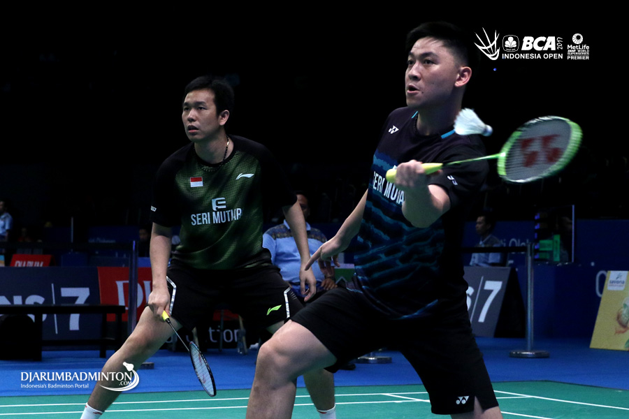 Hendra Setiwan/Tan Boon Heong (Indonesia/Malaysia) menyambut pengembalian