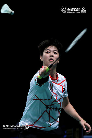 Pay Yu Po (Taipei) mengembalikan shuttlecock