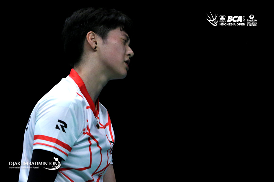 Hendra Setiwan/Tan Boon Heong (Indonesia/Malaysia) gagal menghadang serangan.